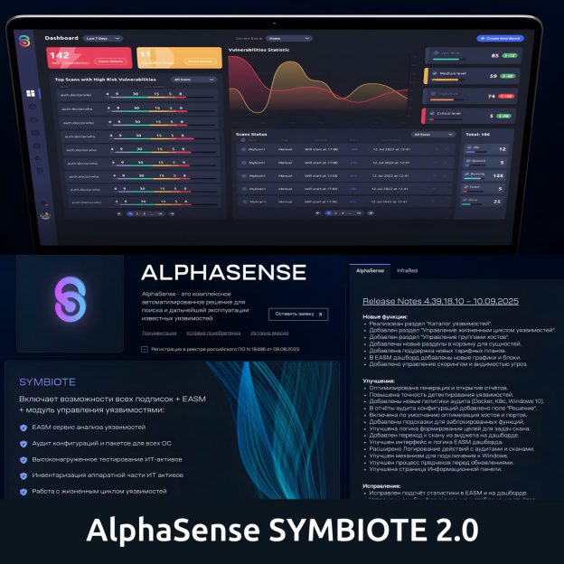 В обновлённую подписку SYMBIOTE добавили модуль EASM (периметровые сканы), DAST-сканирование, аудит Active Directory, VM-дашборды, встроенный трекер задач на устранение уязвимостей.