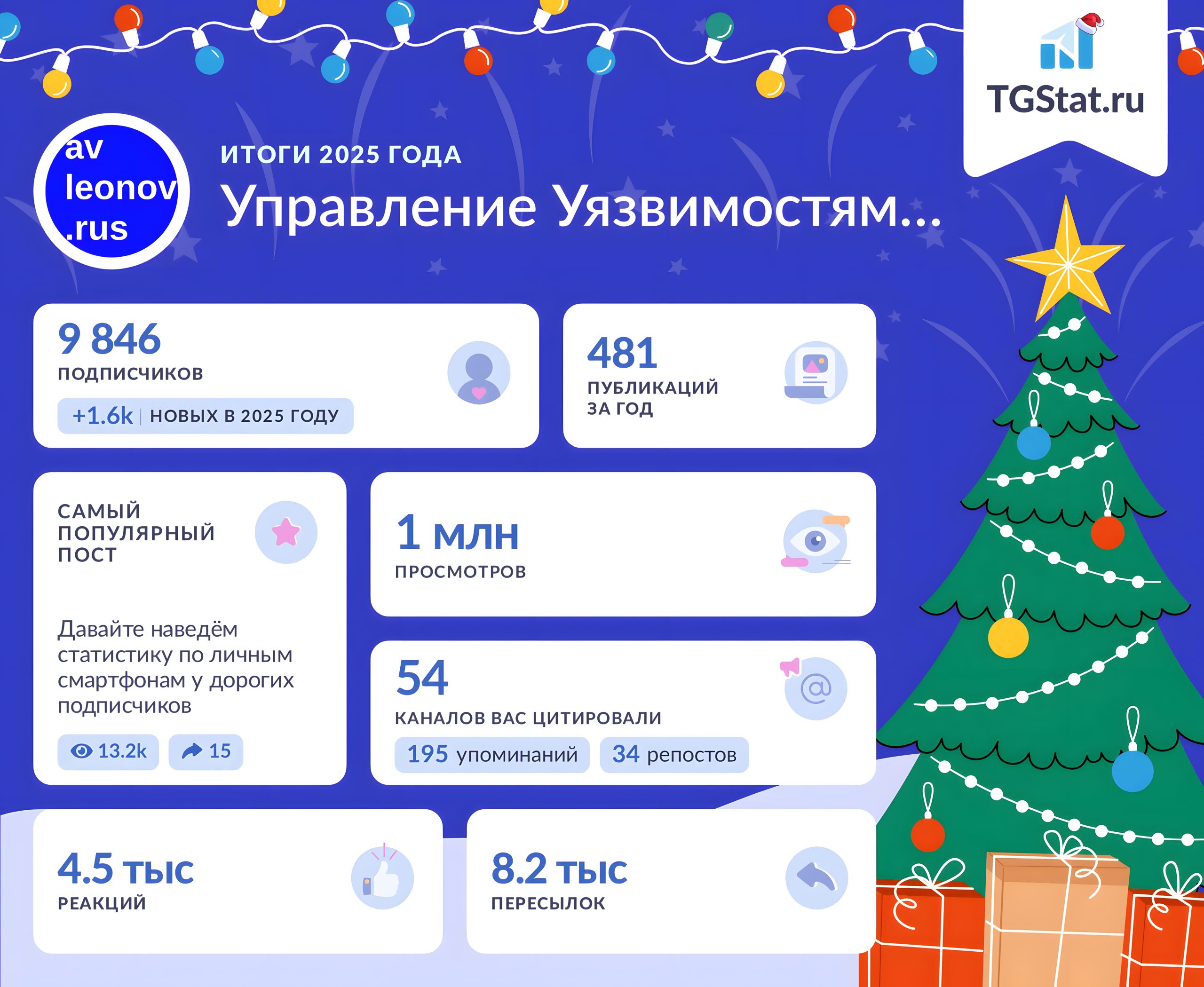 Я тоже пошарю картинку с новогодней статистикой из TGStat. Она за 26 декабря, свежую они генерить отказываются. 🤷♂️🙂