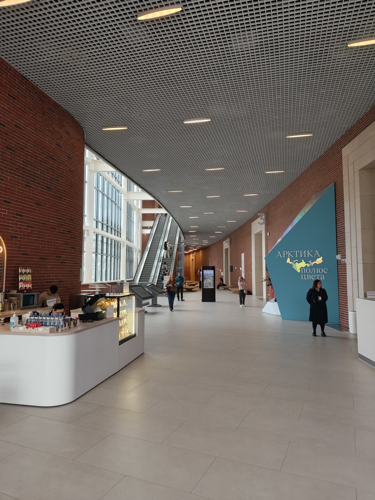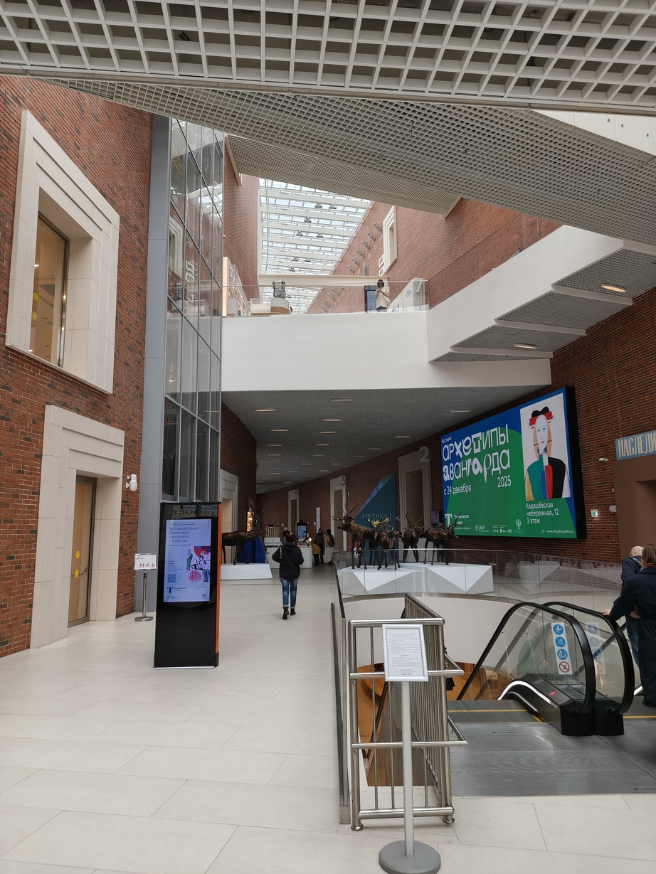 Сходили вчера в Третьяковскую галерею на детскую экскурсию по выставке "Арктика. Полюс цвета". Попали аккурат в последний день. Выставка проходила в новом корпусе на Кадашёвской набережной, открывшемся осенью 2024 года. Очень красивое современное здание. Внутри просторно, много естественного света (даже в пасмурный день), доминирующий белый цвет в сочетании с красным кирпичом. Люблю такое. 😇👍