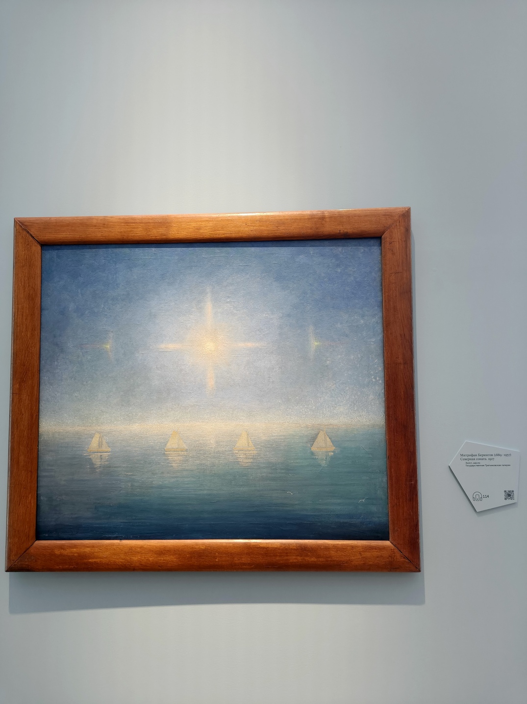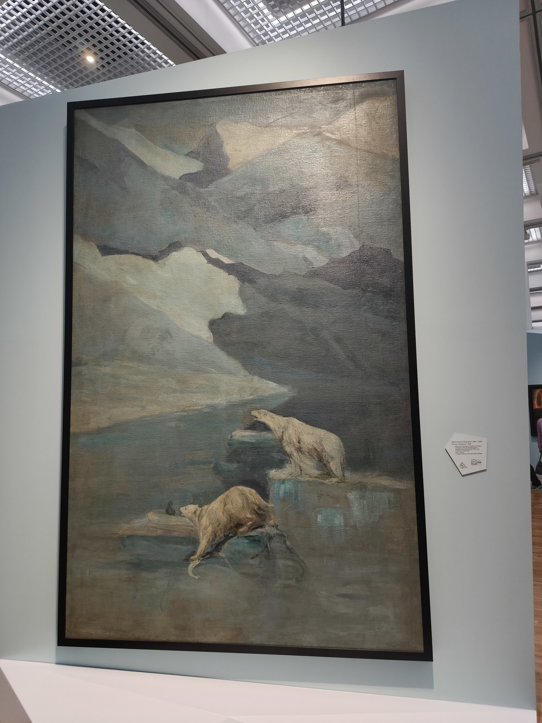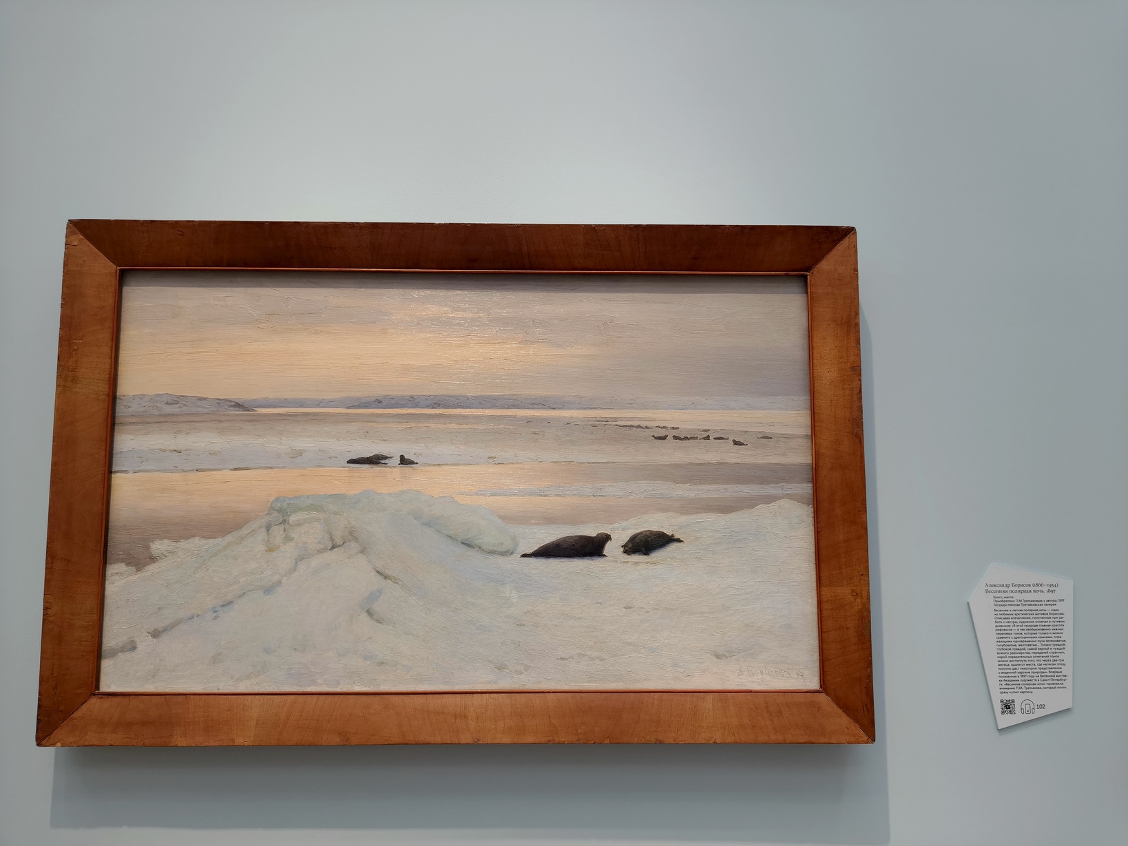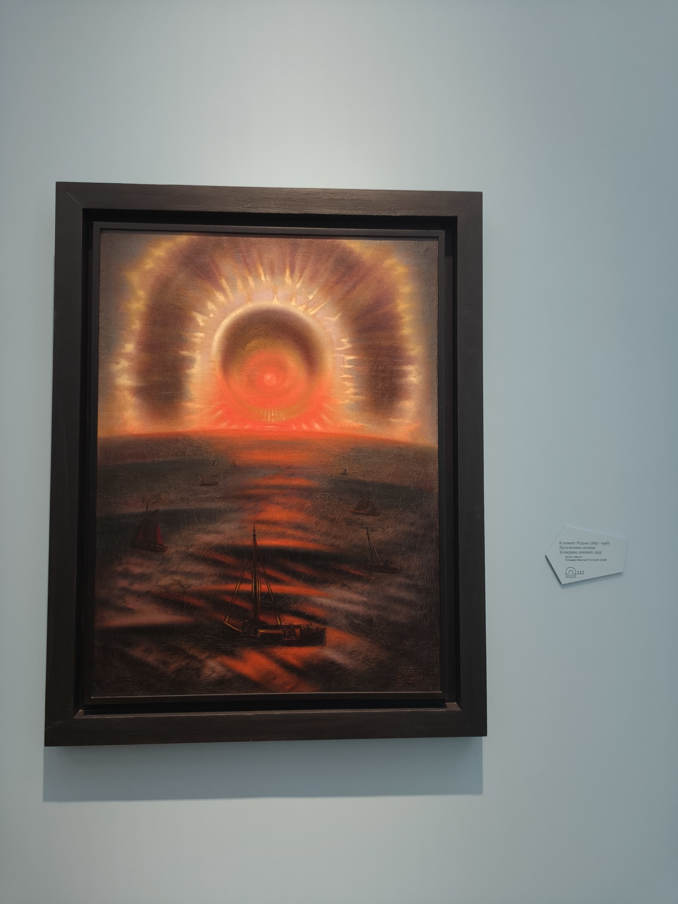 Выставка была посвящена тому, как менялось восприятие Арктики с XVIII века до наших дней - от романтизированных образов далёкого и загадочного Севера к более точному, документальному взгляду эпохи освоения и современным художественным интерпретациям. Через живопись, графику, скульптуру, фотографию и мультимедиа показано, как художники, исследователи и участники экспедиций по-разному осмысляли этот регион, превращая его из мифа в пространство реального опыта и культурного значения. На выставке были представлены произведения художников, скульпторов и фотографов конца XIX - начала XXI века, многие из которых лично бывали в Арктике и вдохновлялись её природой и атмосферой. Среди авторов — Александр Борисов, Константин Коровин, Фёдор Решетников, Фёдор Конюхов и другие. Наибольшее впечатление на меня произвела работа Климента Редько "Полуночное солнце" (1925).